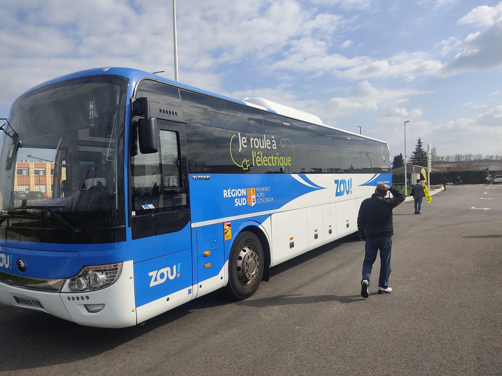 Pour cette occasion, Transdev Vaucluse avec l'accord de la Région SUD nous ont mis à disposition un véhicule propre (car électrique) qui a effectué le trajet entre le MIN de Chateaurenard et la station de Plan d'Orgon.